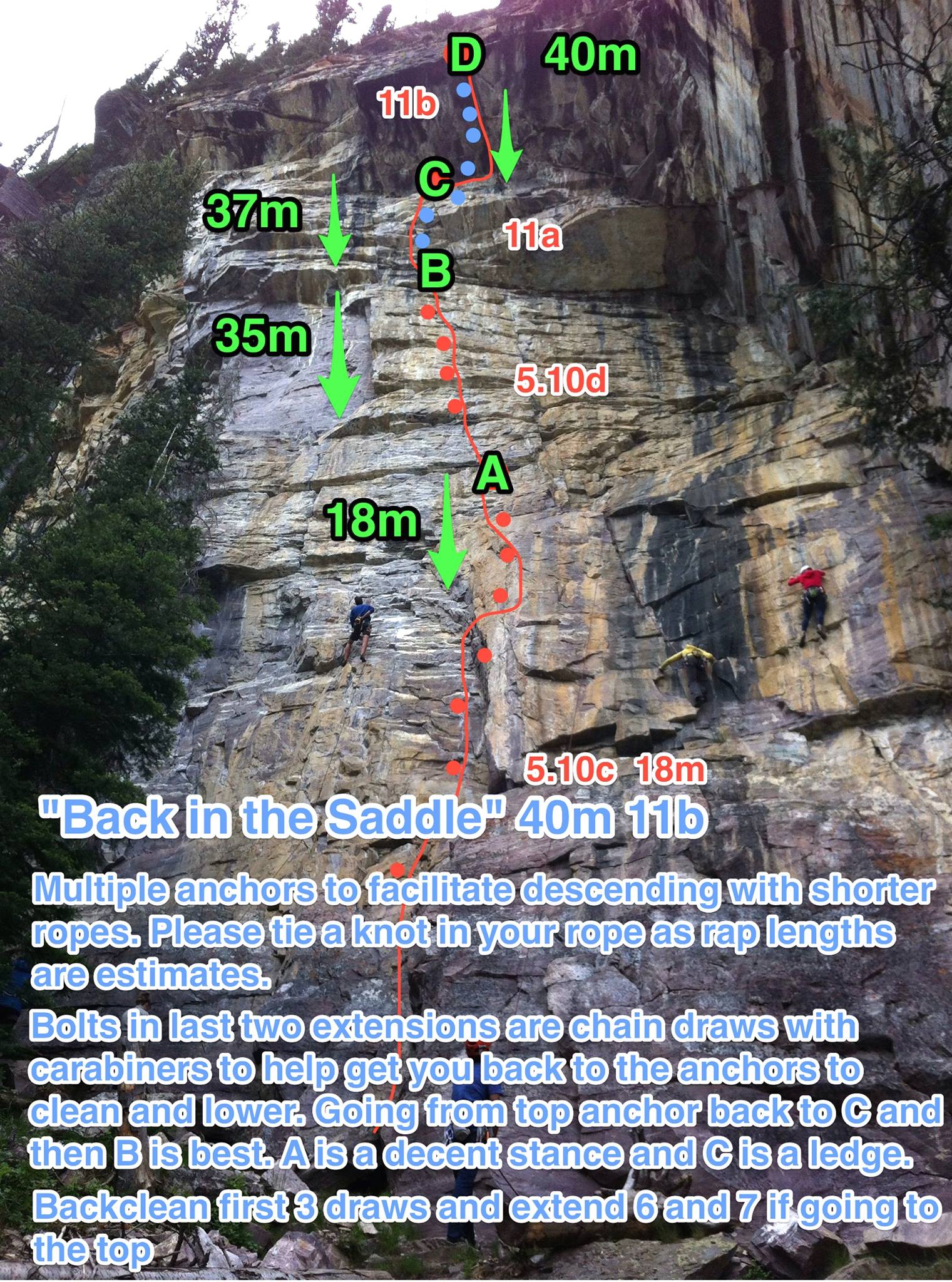Just finished a new route, "Back in the Saddle" (40m 11b) at the back of the lake. The route is located at the outhouse area, between "Public enemy" and "Pub night" and end of the old route "Brave new world"